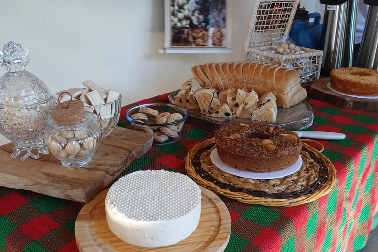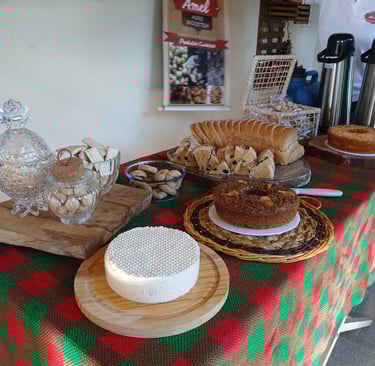 Ao longo do trajeto, os participantes tiveram uma experiência especial ao serem recebidos pela Graça, proprietária da *Amel Produtos Caseiros*. Com sua hospitalidade, Graça abriu as portas para apresentar o sabor e a tradição dos produtos artesanais que encantam quem visita a localidade.
